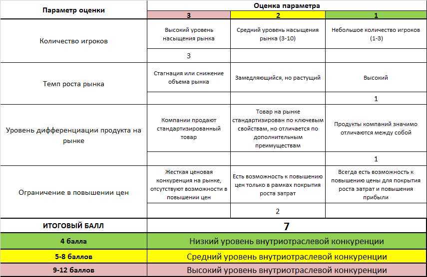 Оцените уровень внутриотраслевой конкуренции по следующим параметрам: количество игроков, темп роста рынка, уровень дифференциации продукта на рынке, ограничения в повышении цен.