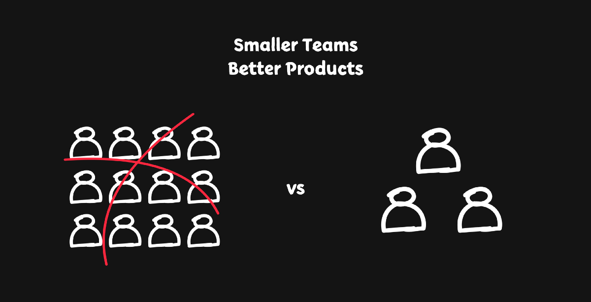 Чем больше людей, тем больше заморочек. Если вы хотите упростить процесс, лишние люди будут мешать — большим командам нужен руководитель, без него им трудно саморегулироваться.