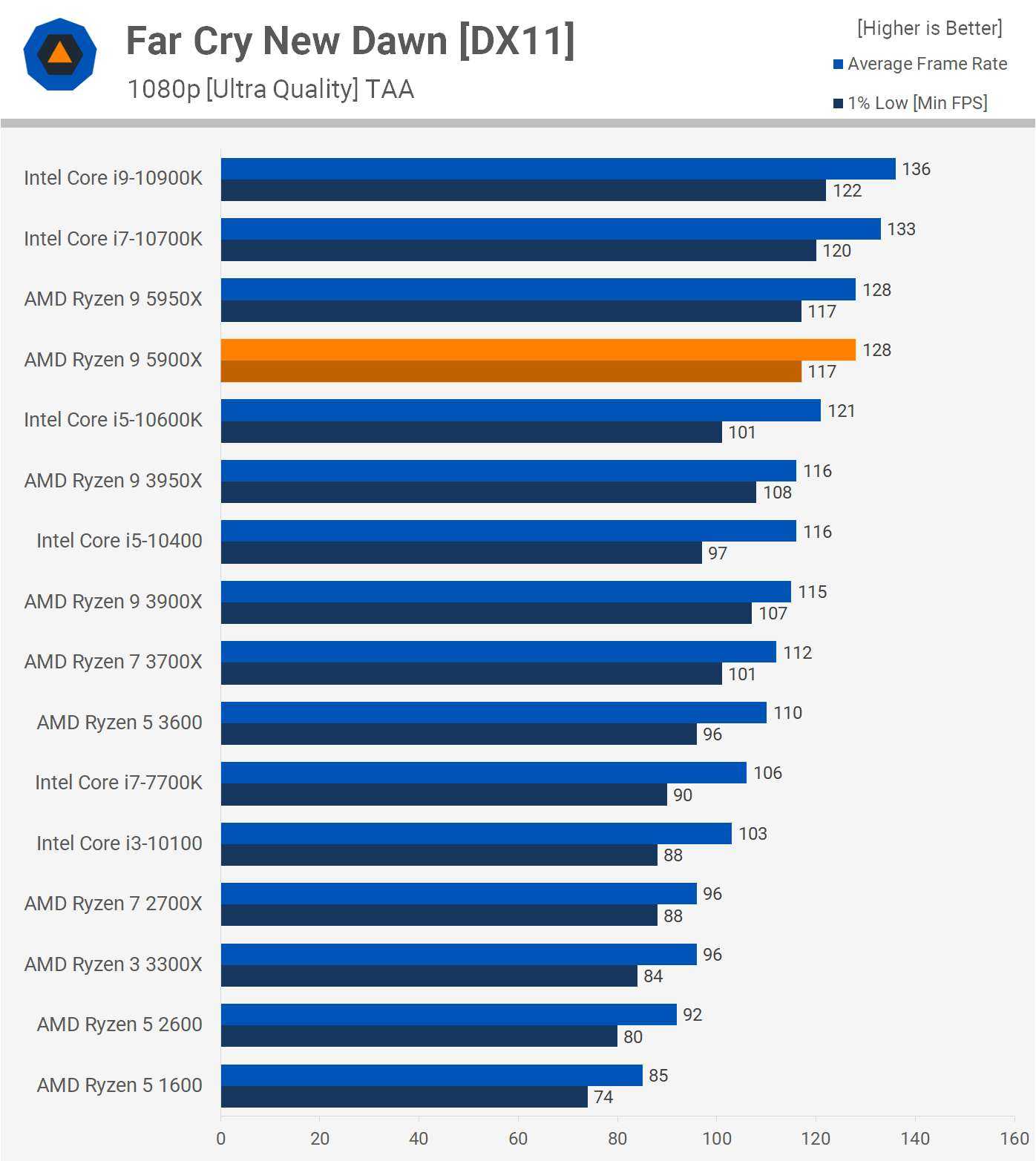 У нас такой же набор игровых тестов, что и во вчерашнем обзоре 5950X с использованием GeForce RTX 3090. В том же порядке мы начнем с Far Cry New Dawn.