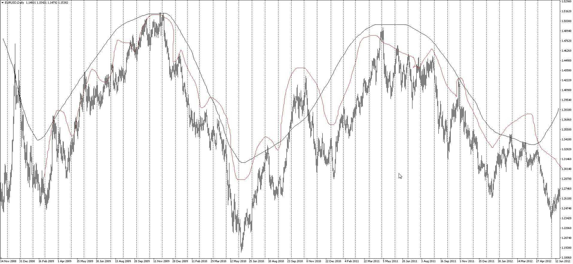 Аналитики, занимающиеся изучением рыночных циклов, подчеркивают, что для подтверждения целесообразности открытия той или иной позиции результаты циклического анализа необходимо сочетать с сигналами других технических инструментов. Например, получить представление о том, когда должен произойти поворот цикла, аналитик может с помощью временных окон (time windows) или временных полос (timing bands), которые являются разновидностями временных фильтров, способных “отсеивать” не значимые движения цен.