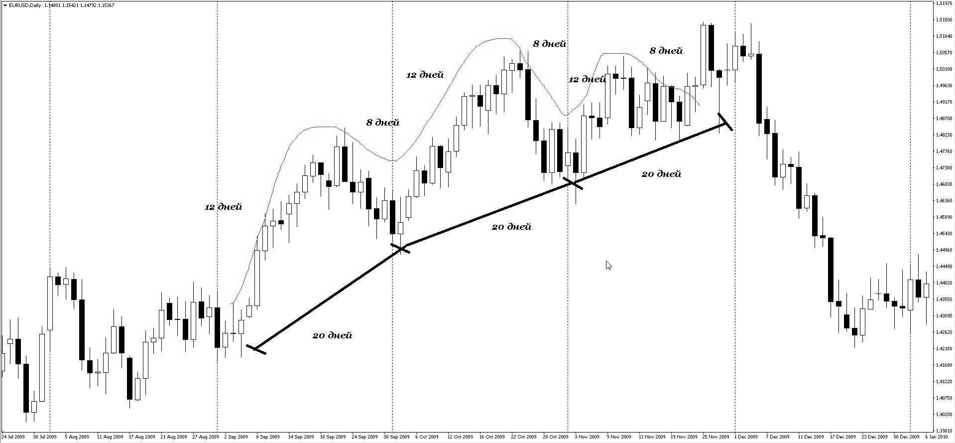 - промежуточные циклы (intermediate) (от девяти до двадцати шести недель), и торговые циклы (trading) (четыре недели).