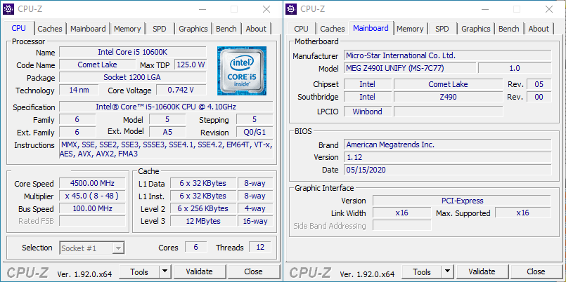 В нашем случае диагностическая утилита CPU-Z определила Intel Core i5-10600K к степпингу Q0 ревизии 5. На крышке процессора указан код SRH6R, что подтверждает данную версию.